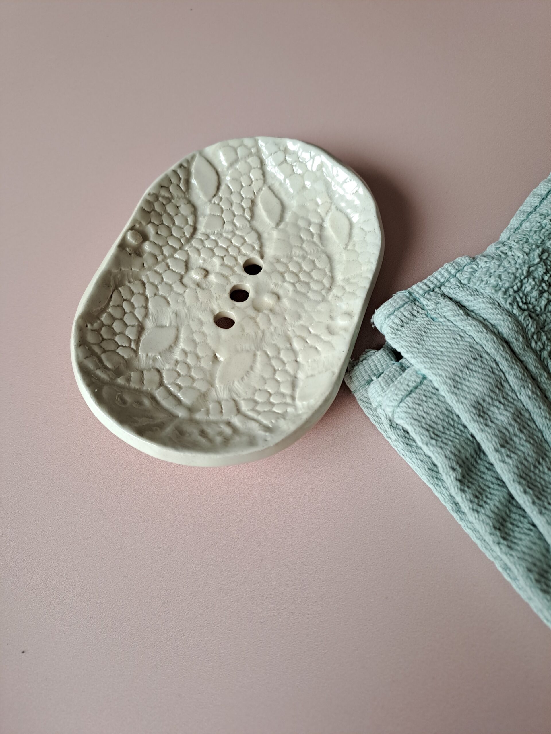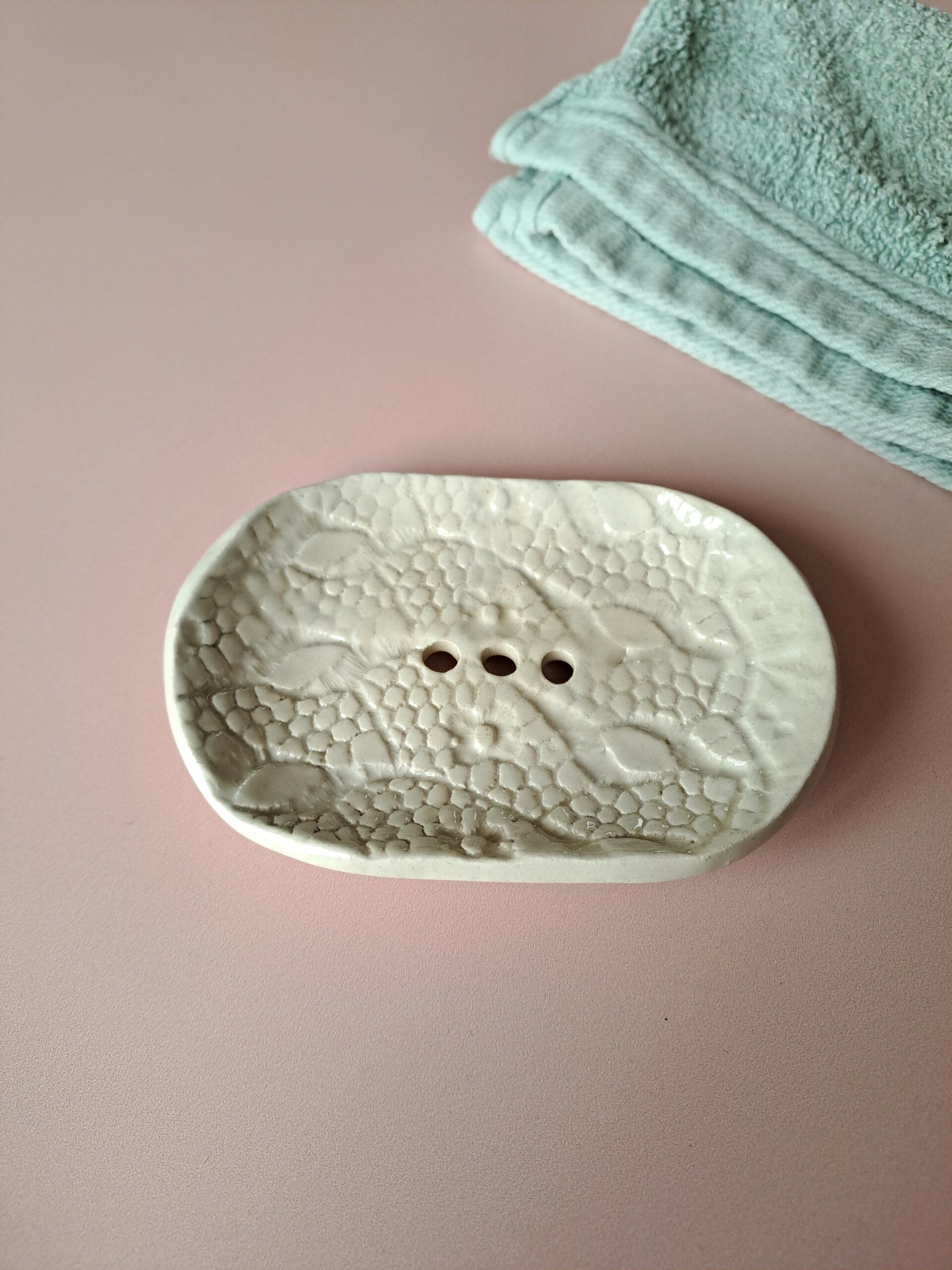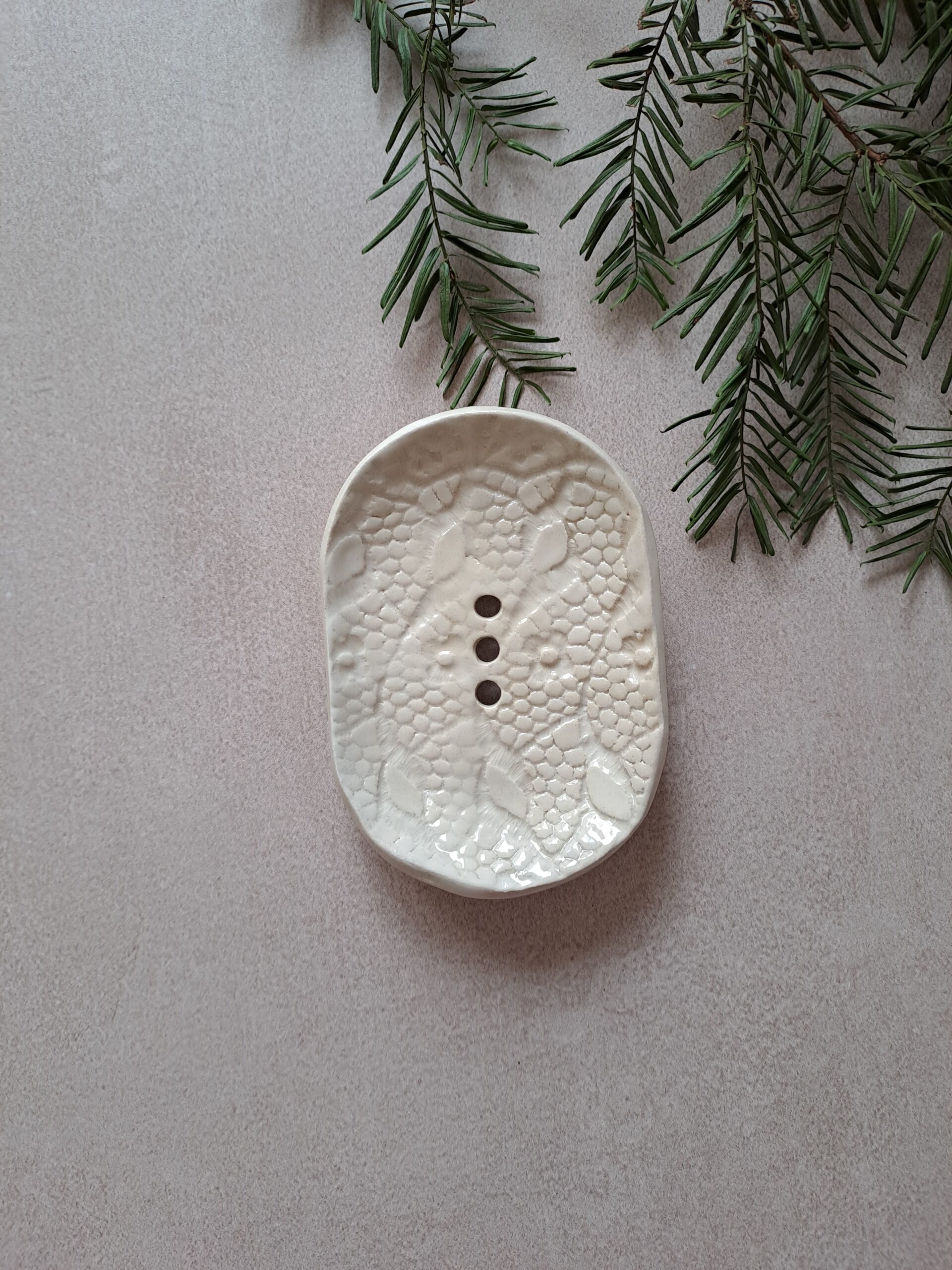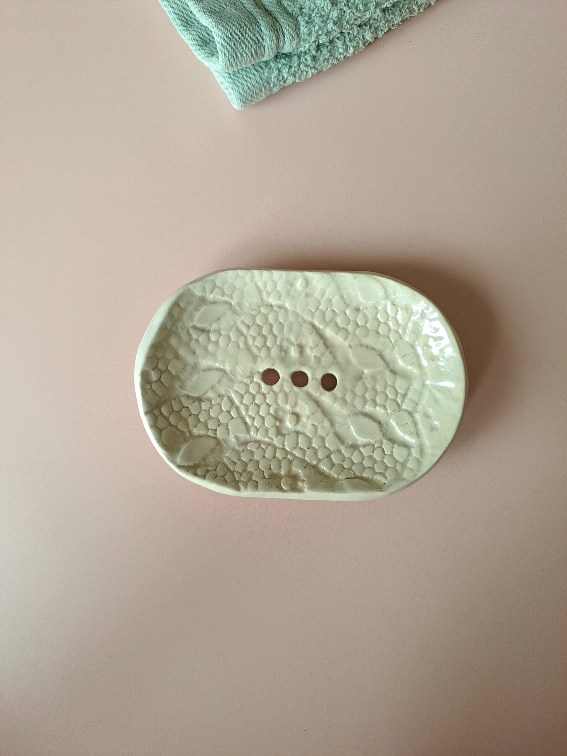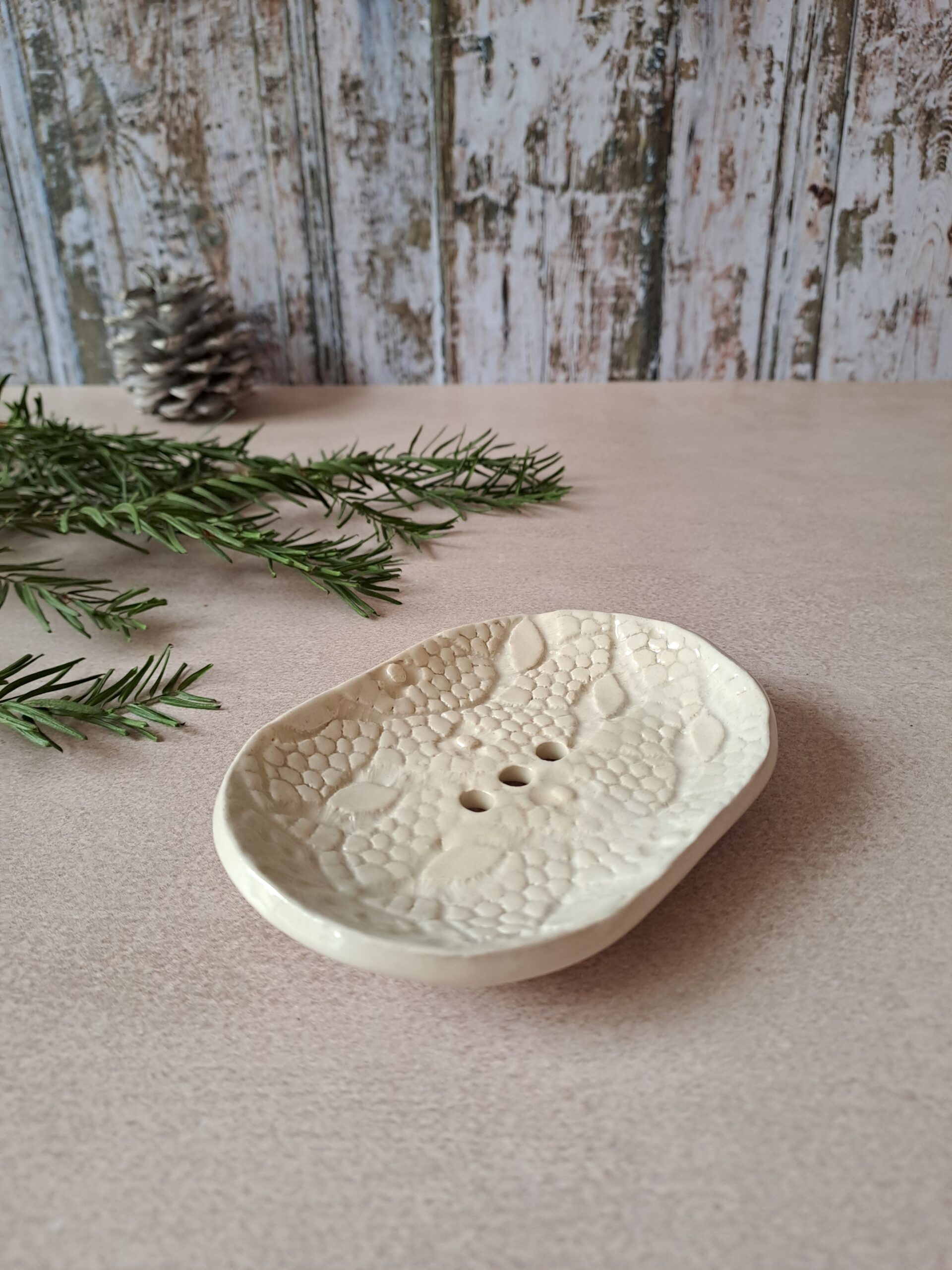 Ajoutez une touche de poésie et de raffinement à votre salle de bain avec ce porte-savon en céramique.